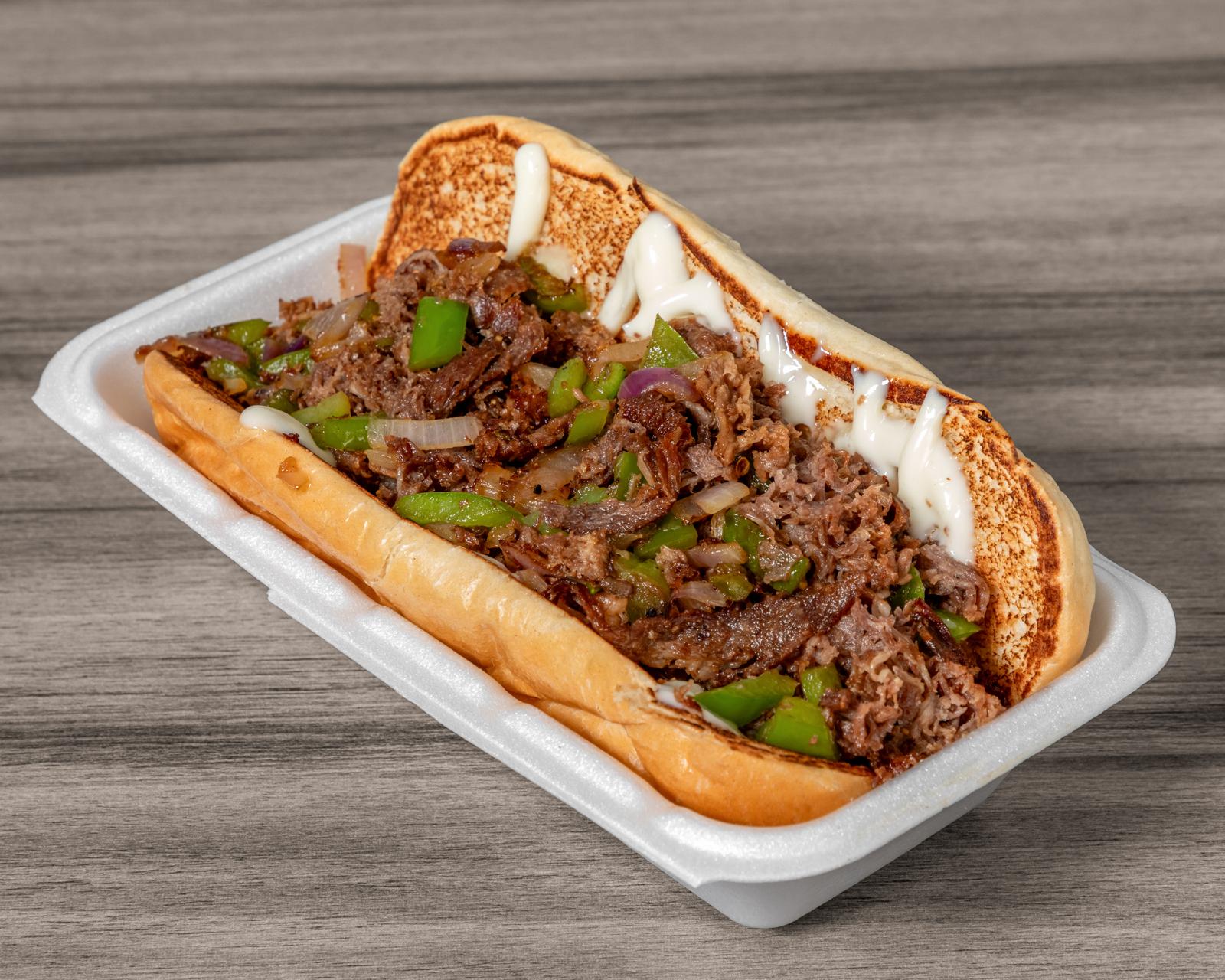 Sink your teeth into this juicy steak sandwich loaded with tender chicken, caramelised onion, garlic aioli, mustard, rocket/arugula and tomato.